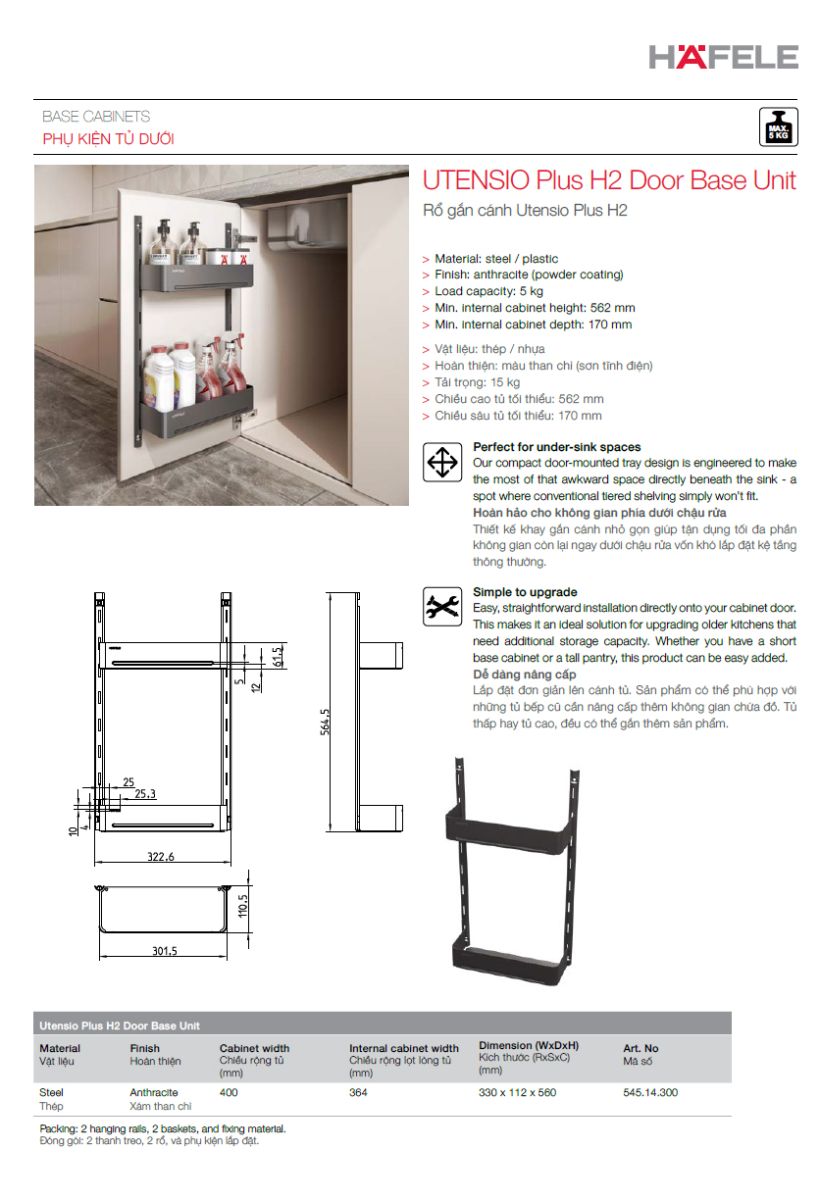 Rổ tủ đồ khô cánh bản lề Utensio Plus H2 450mm 504.68.382