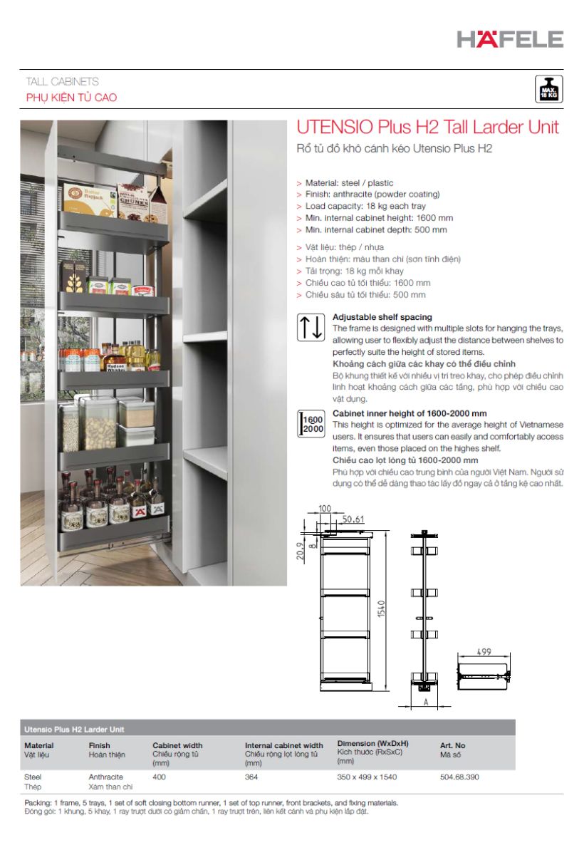 Rổ tủ đồ khô cánh bản lề Utensio Plus H2 600mm 504.68.385